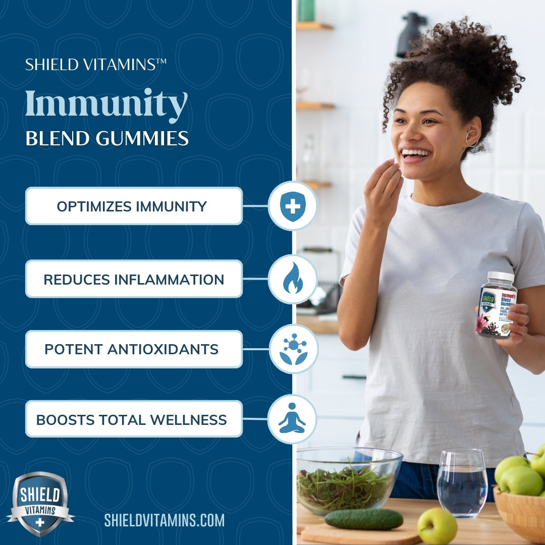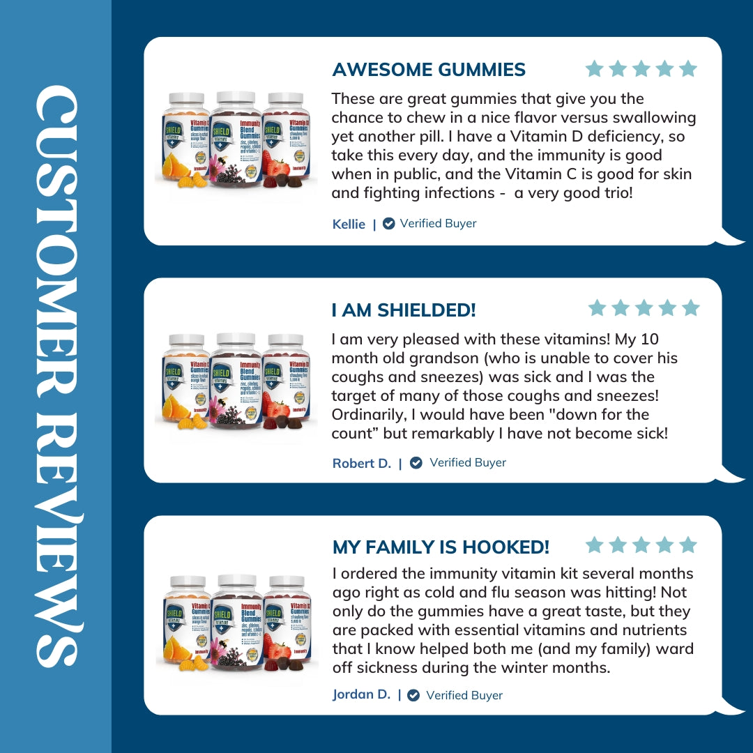 Finally, vitamins that keep up with your busy lifestyle. This great-tasting vitamin kit, featuring our complete immunity gummy line, works together to support your immune system, keeping you #ShieldStrong and vibrant. Great for the active adult looking for a simple, delicious way to incorporate vitamins into their busy schedule.