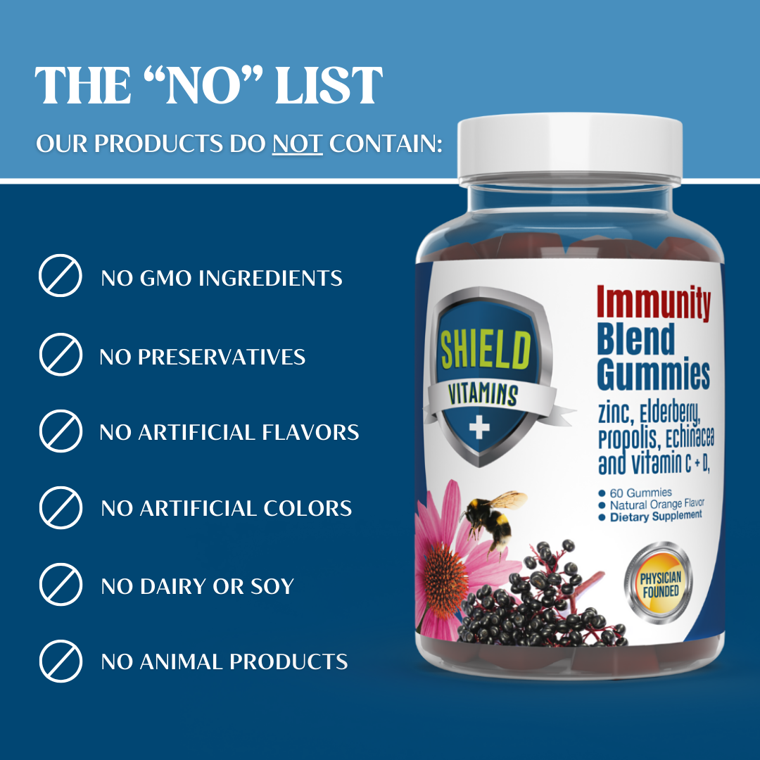 Our Immunity Blend Gummies are formulated with 100% vegan ingredients.